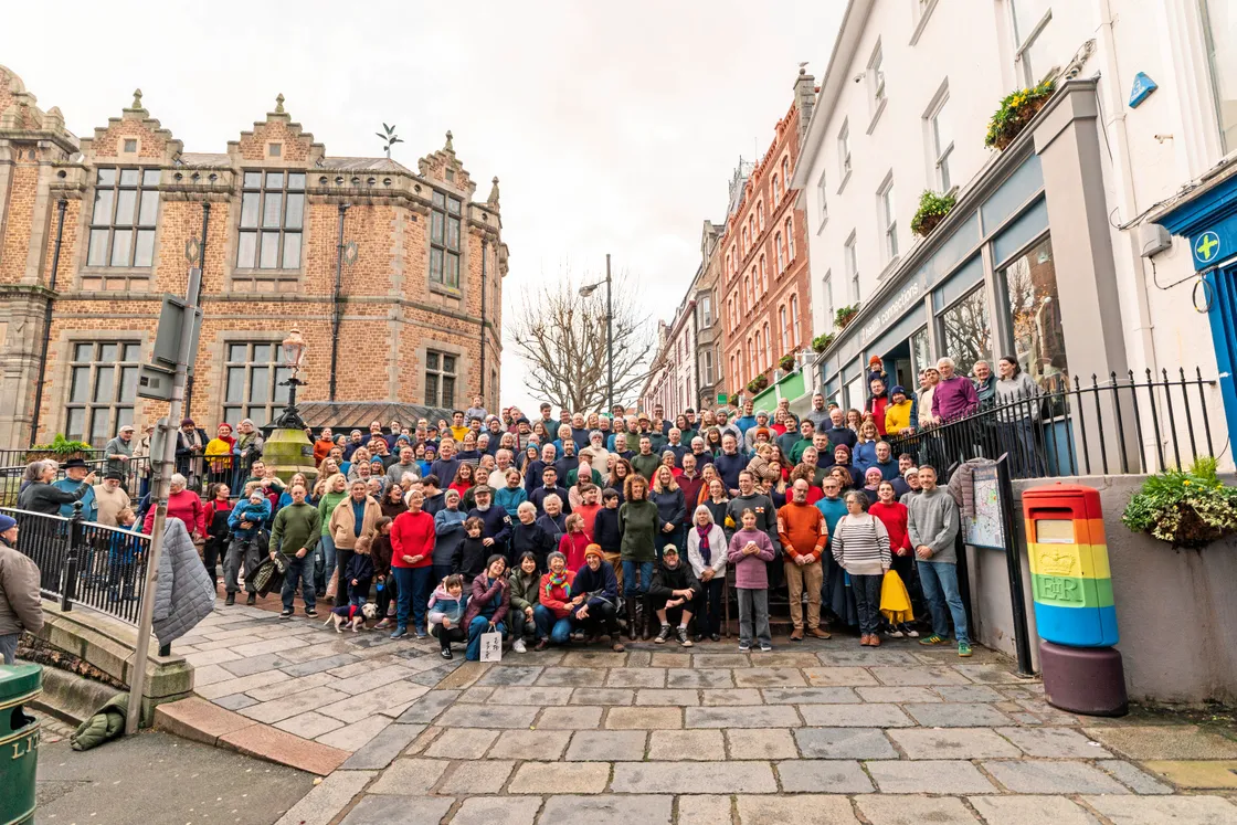 A visit from a Japanese film crew (NHK) brought together a huge congregation of locals, sporting their guernseys, for a documentary focused on hand-knitting and the popularity of the garment in Japan. It was so nice to see everyone come together, proud of our heritage.