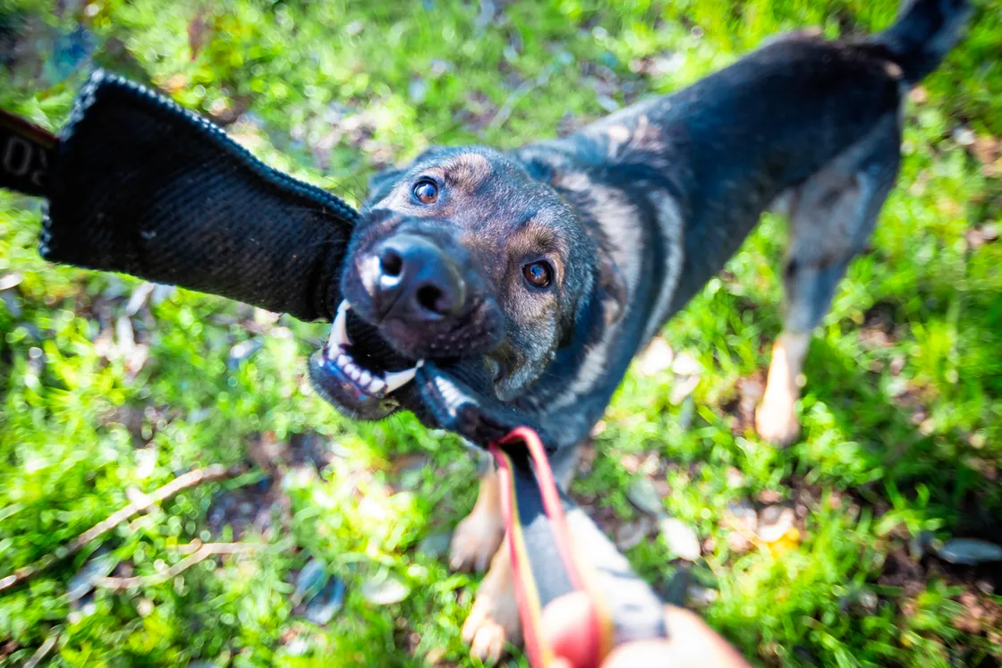 We often get to do interesting things as a Guernsey Press photographer and a morning with the police dog section was definitely one of them. Here, Max the dog is playing with one of his toys while I snapped away with a wide-angle lens. Close – but not too close...