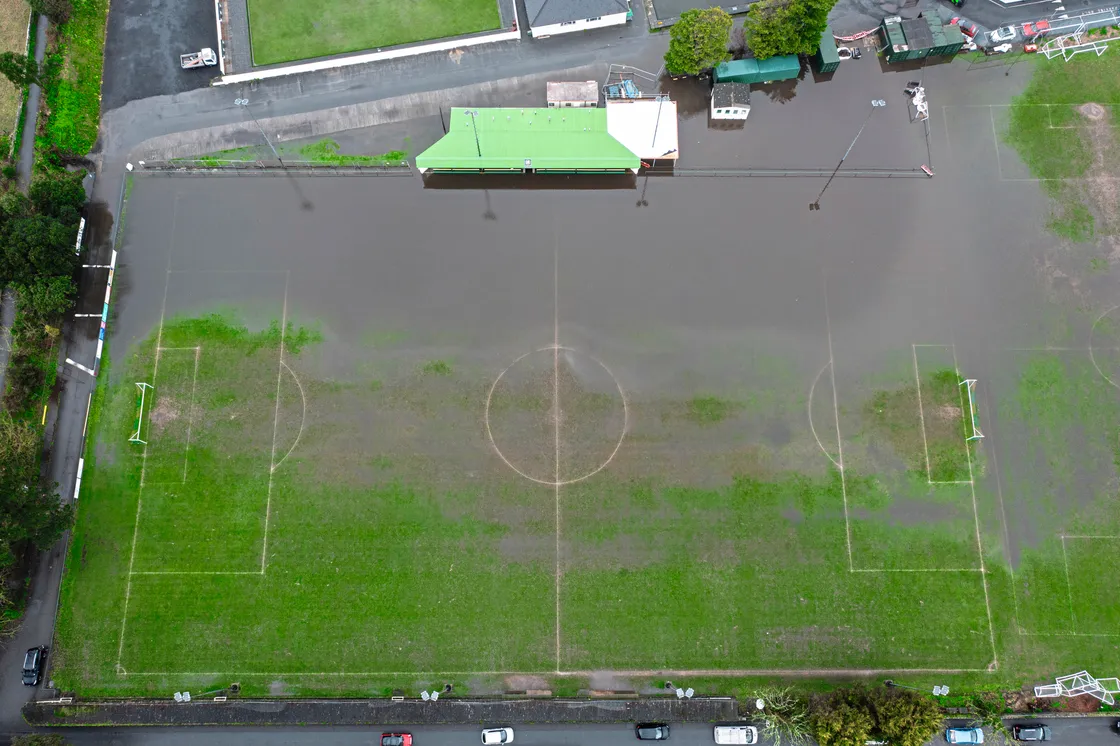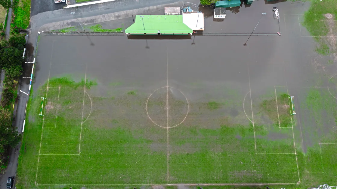 After a deluge of rain I was trying to photograph the flooding at the Corbet Field, but the view from ground level was not doing it justice. I was able to get the drone up once the skies cleared and the result was much more dramatic.